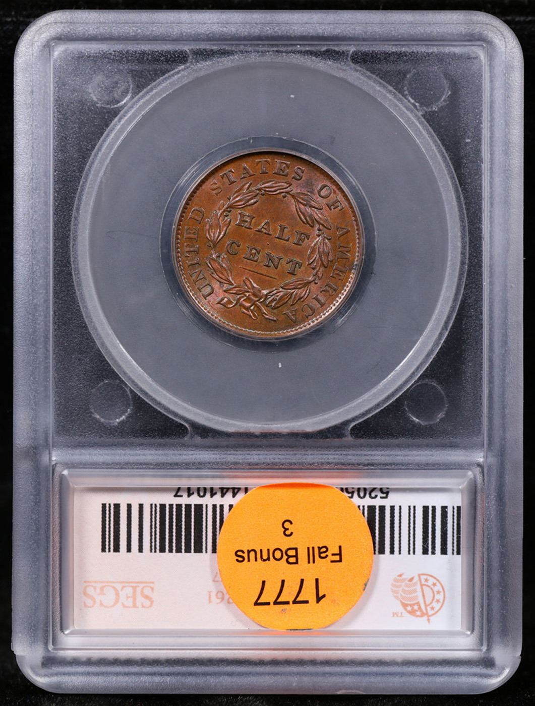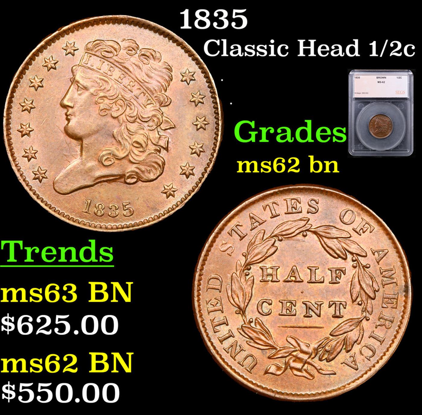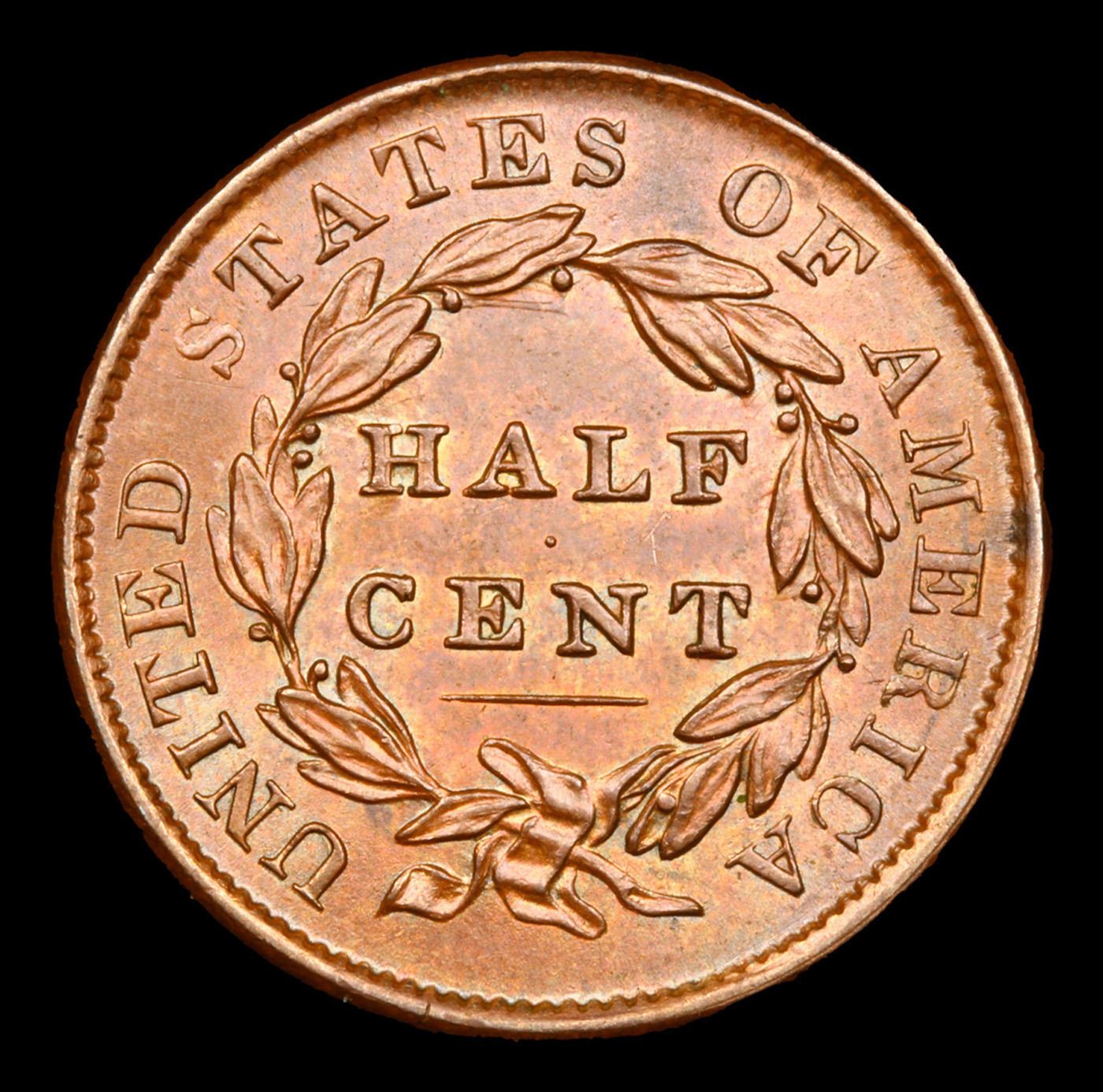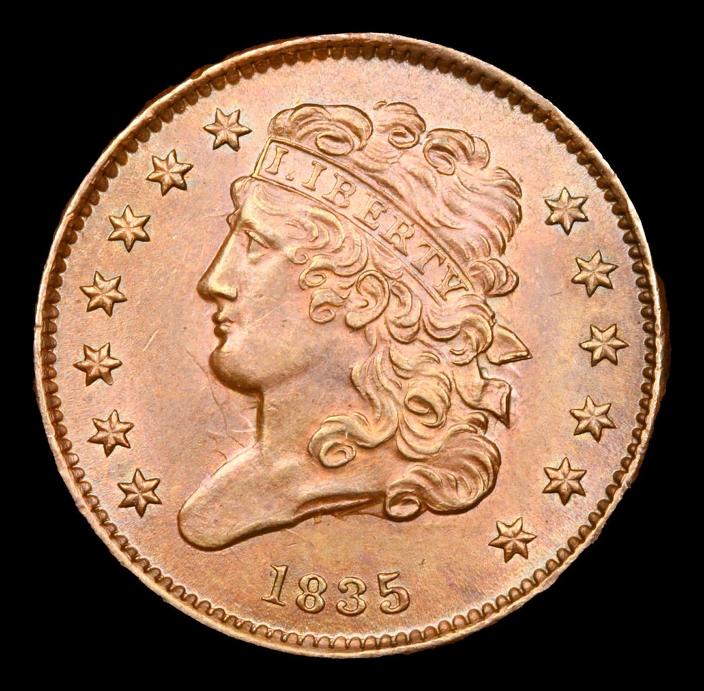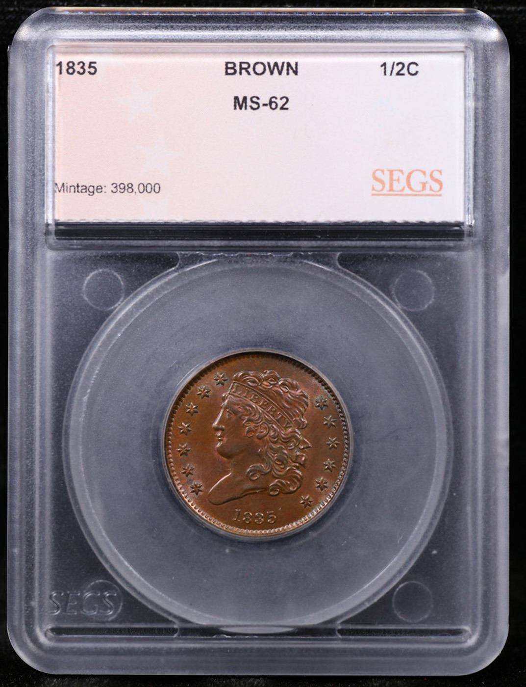 1835 Classic Head half cent 1/2c Graded ms62 bn By SEGS.