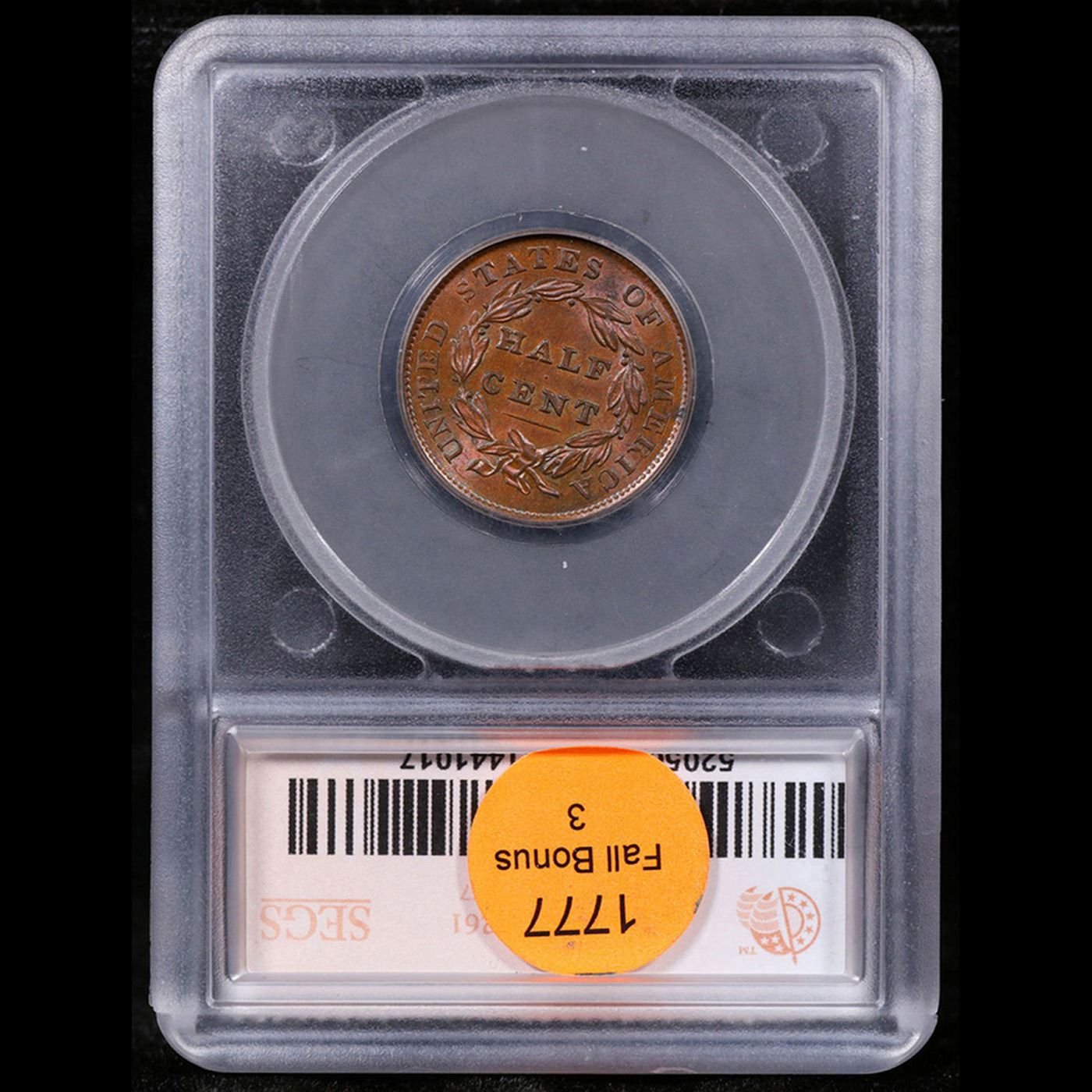 1835 Classic Head half cent 1/2c Graded ms62 bn By SEGS.