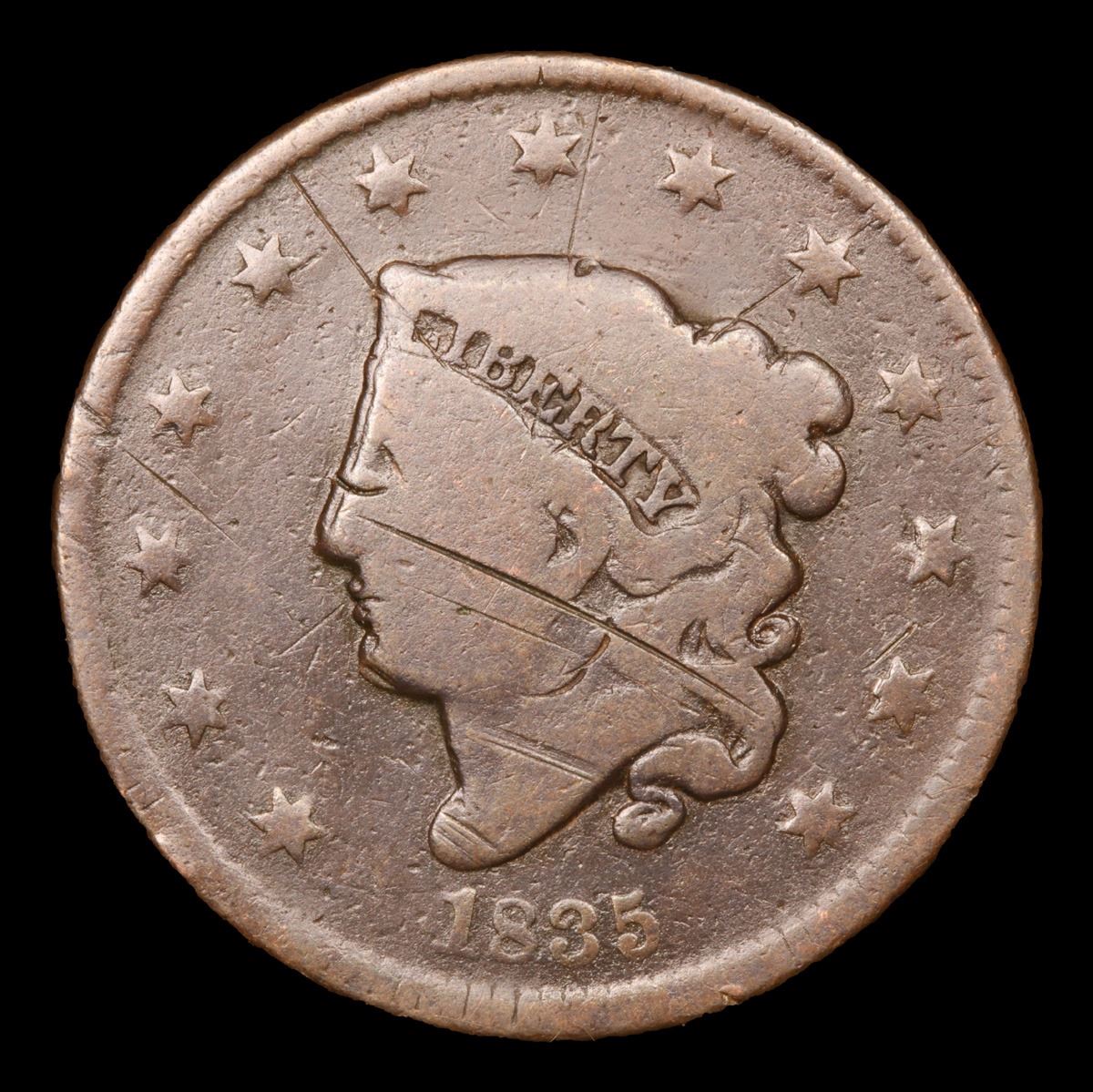 1835 . . Coronet Head Large Cent 1c Grades f details.