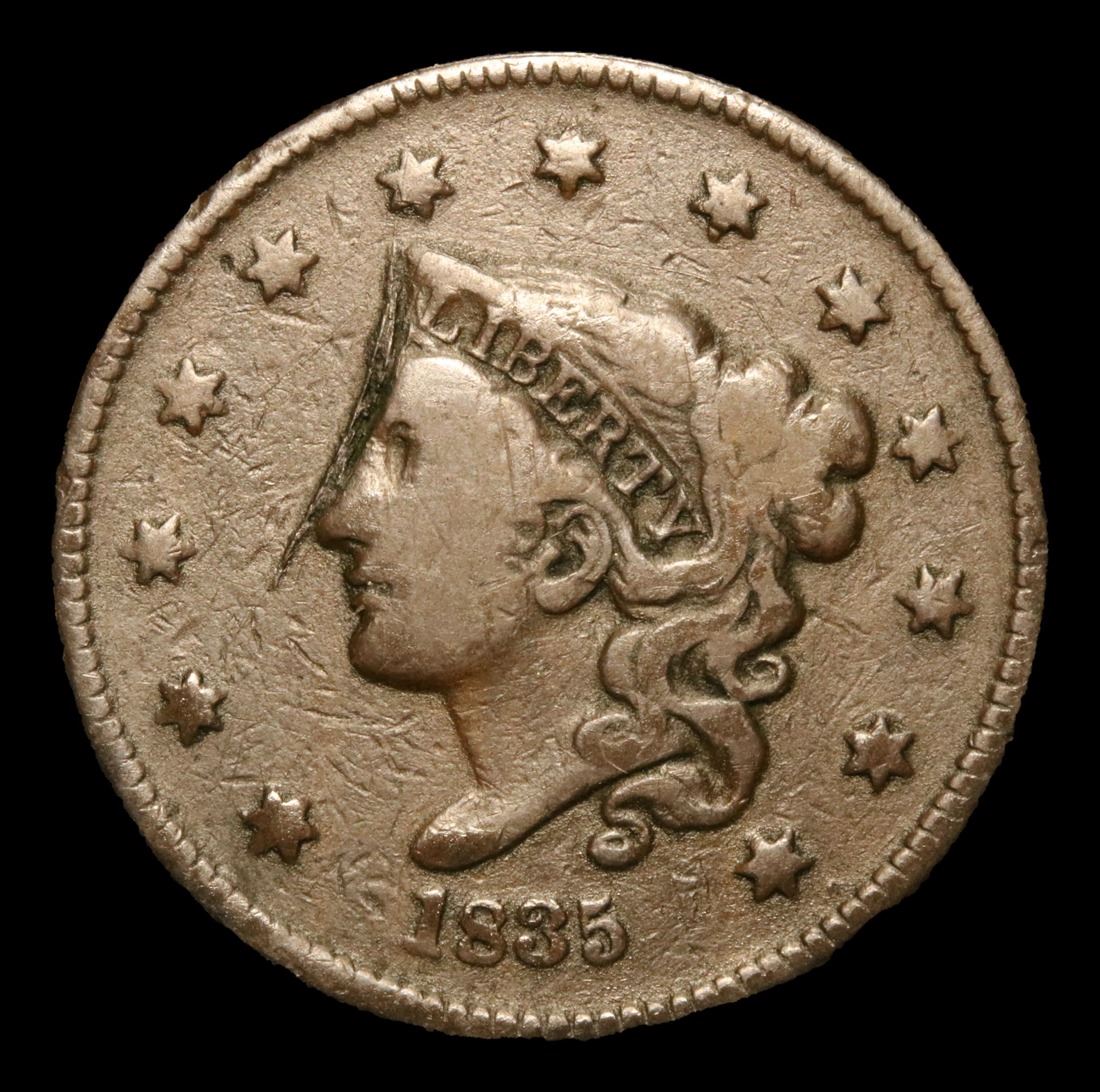 1835 Coronet Head Large Cent 1c Grades vf+.