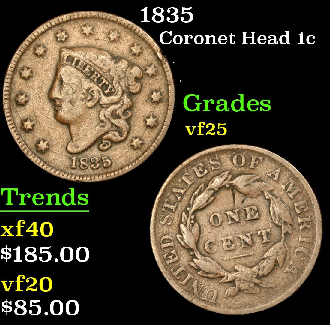 1835 . . Coronet Head Large Cent 1c Grades vf+.
