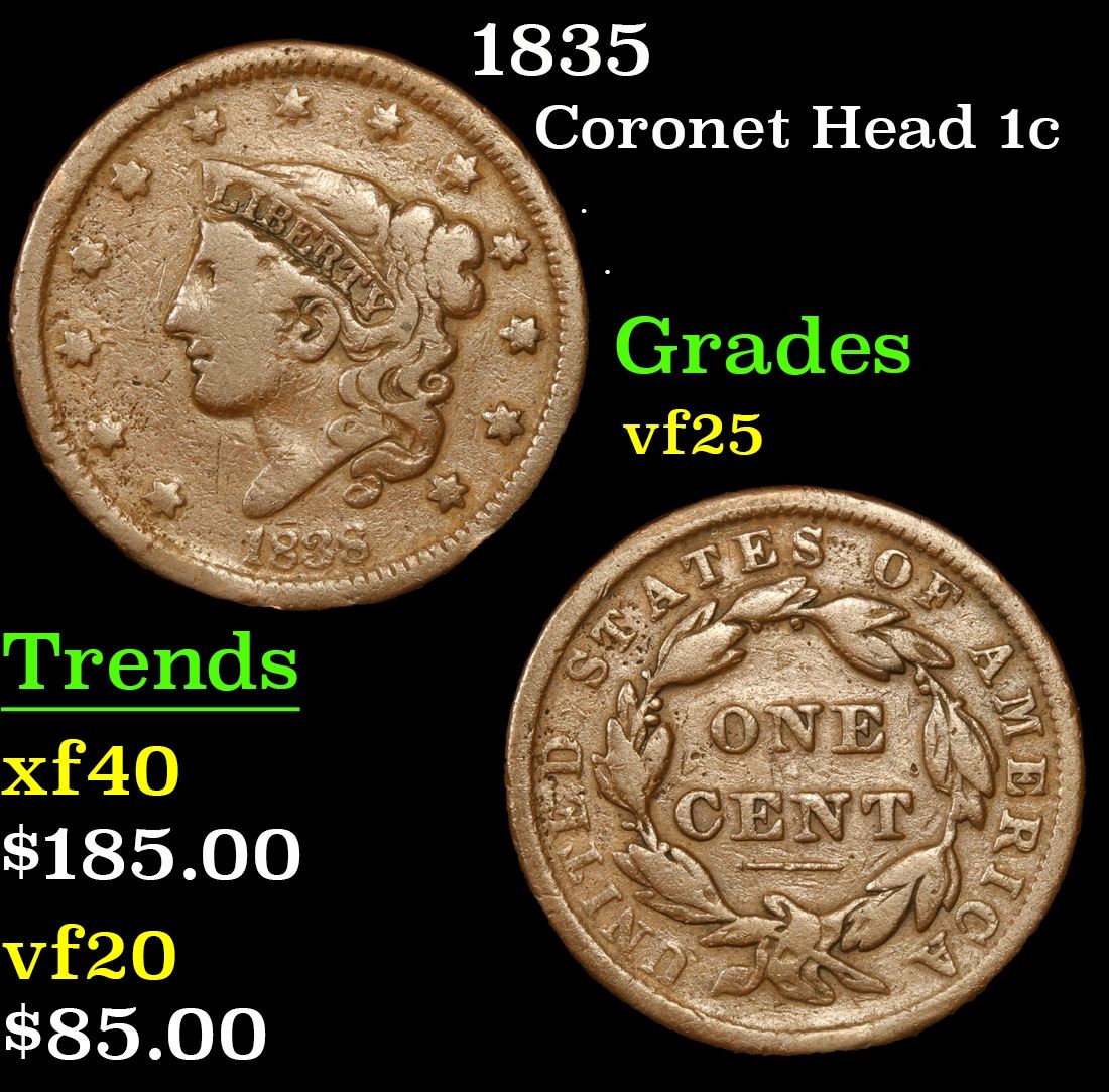 1835 . . Coronet Head Large Cent 1c Grades vf+.