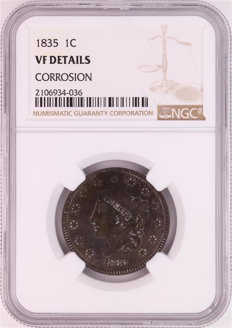 One 1835 Coronet Head Large Cent Coin NGC VF Details. NGC Certified.