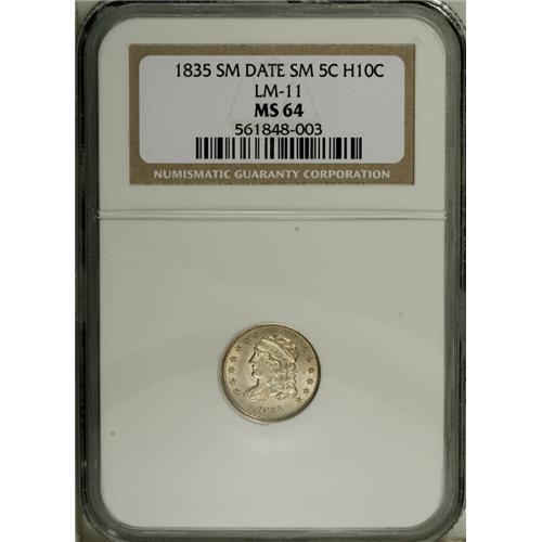 1835 H10C Small Date, Small 5C MS64 NGC. V-1, LM-11, R