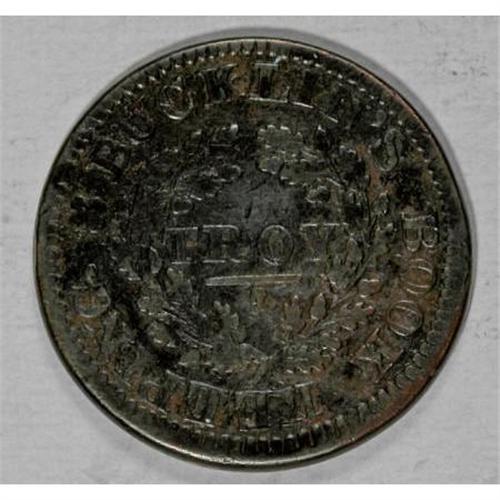 <B>1835 Hard Times Token, HT-353, Bucklin's Interest Tables.</B></I> Low-92, HT-353, R.1. Copper. 28.5 mm. Issued from Troy, New York. Harshly cleaned with scattered corrosion; a pair of intersecting pinscratches are noted near the center of the reverse. <BR><BR><b>Shipping:</b> Coins & Currency (<a target="_blank" href="http://www.heritageauctions.com/common/shipping.php">view shipping information</a>)