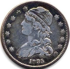 1835 LIBERTY BUST QUARTER-XF-“E Pluribus Unum” removed from above eagle