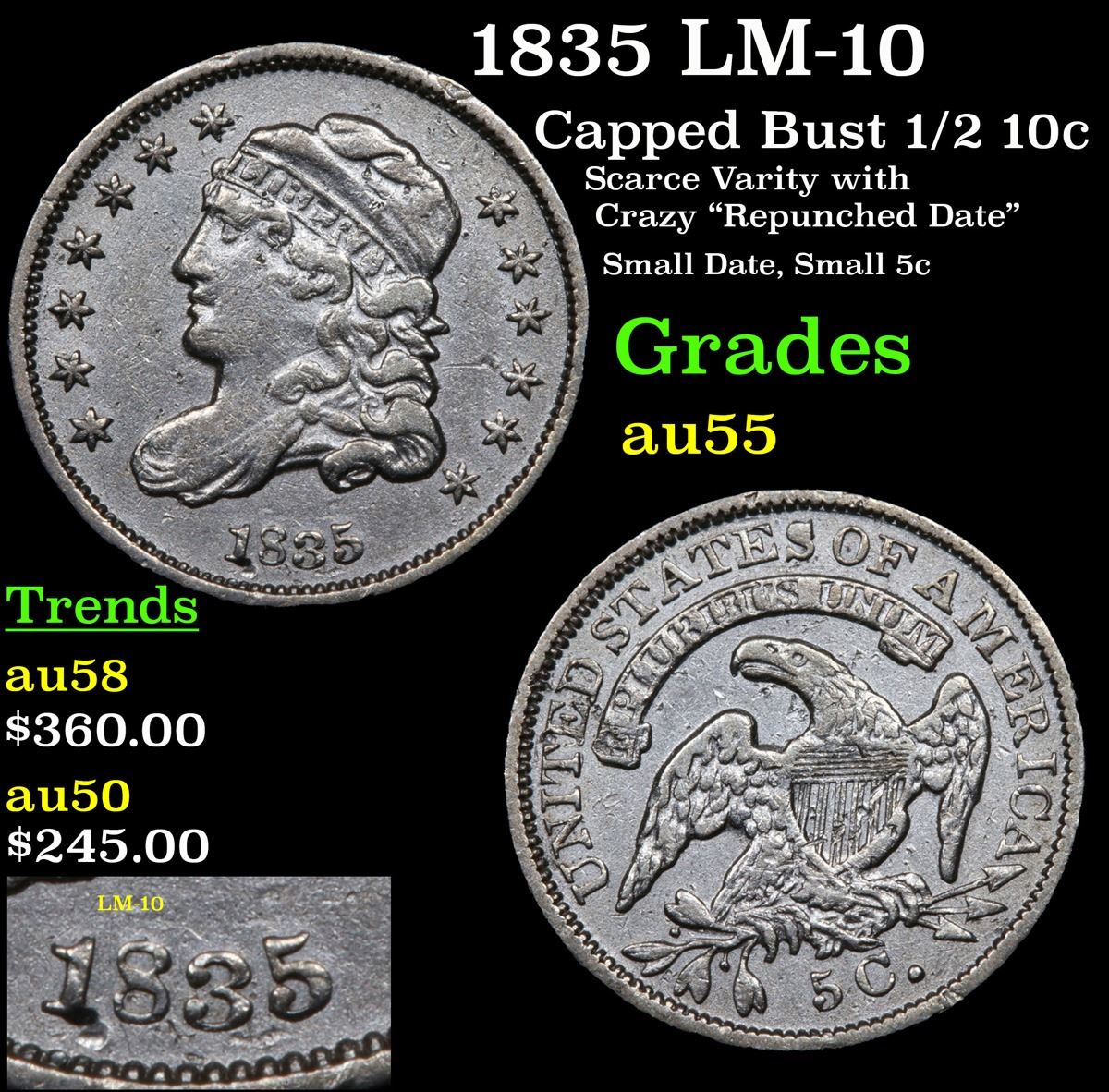 1835 LM-10 Capped Bust Half Dime 1/2 10c Grades Choice AU.