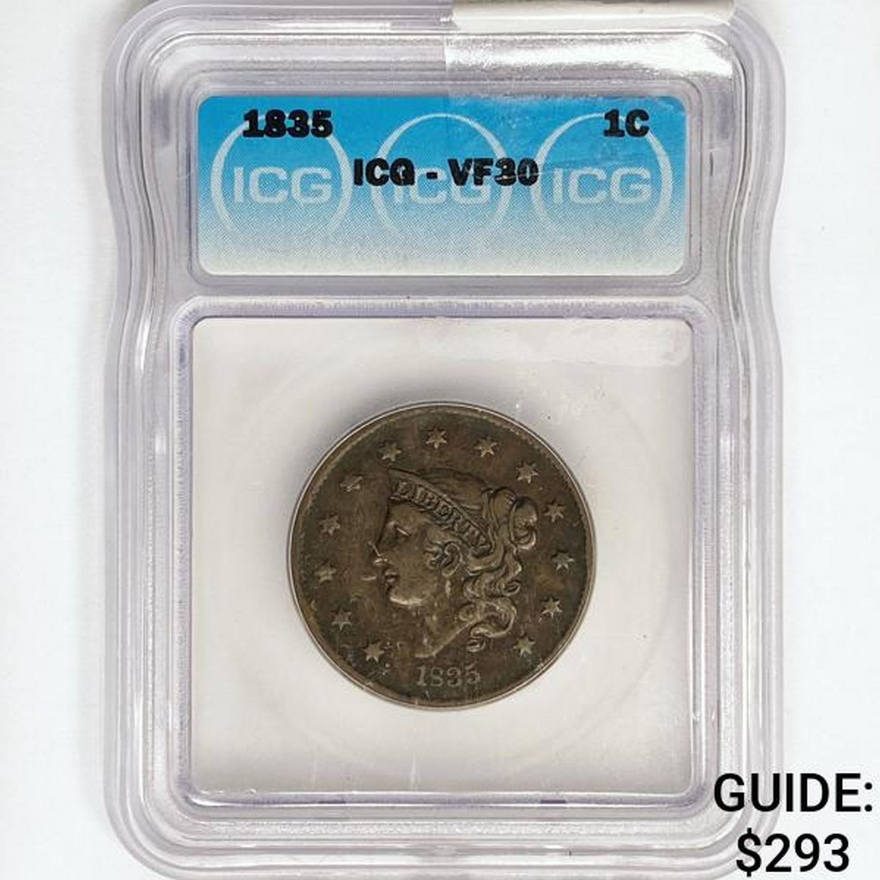 1835 Large Cent ICG VF30