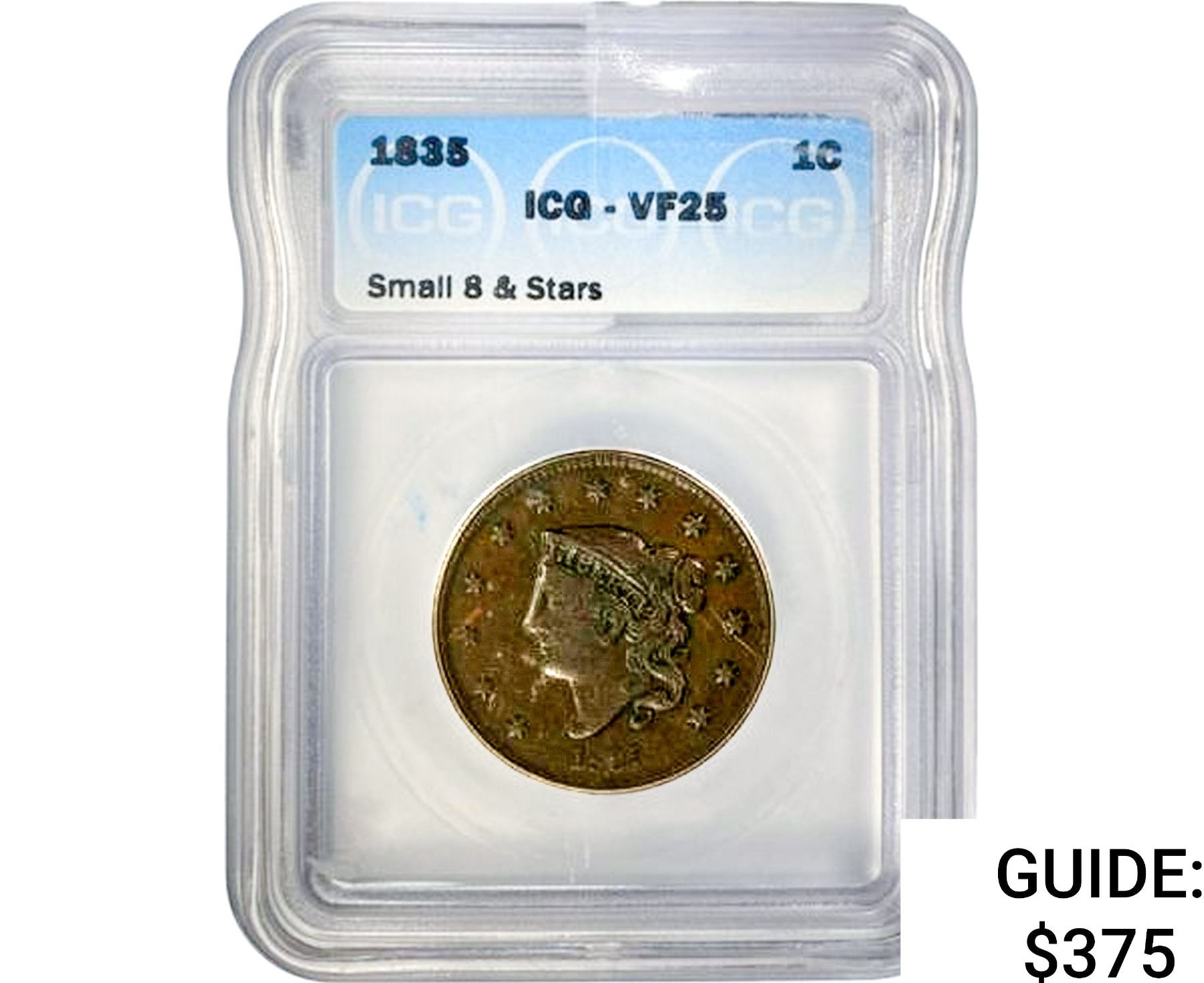 1835 Liberty Cap Cent ICG VF25 Small 8 & Stars