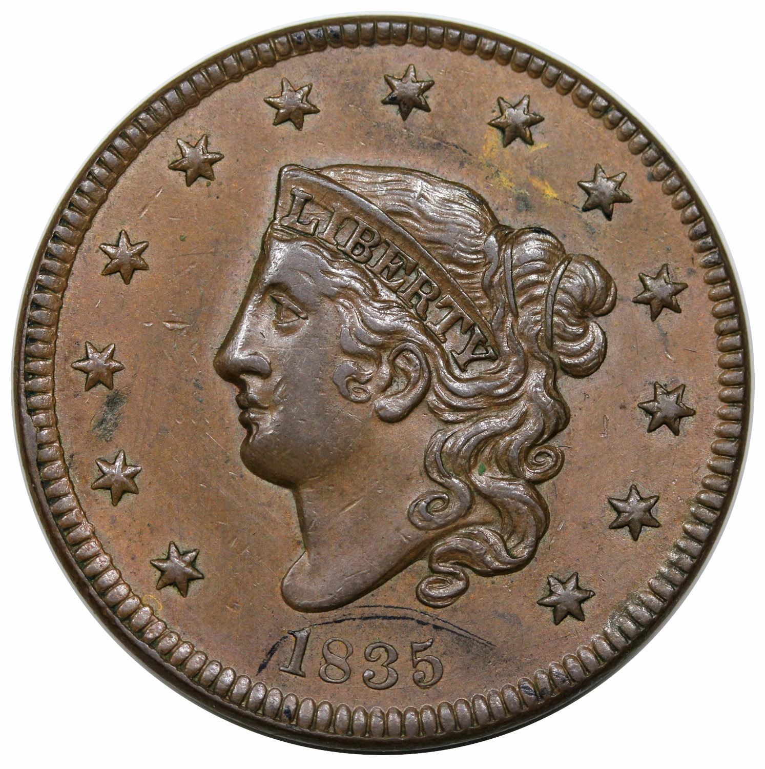 Small 8, Stars. Frosty tan, has that “golden biscuit” color this variety sometimes comes with. AU50 with a slight deduction for minor stains of darker color here and there. No serious marks. MDS. Comes with a Grellman card graded 50 net 45+.
