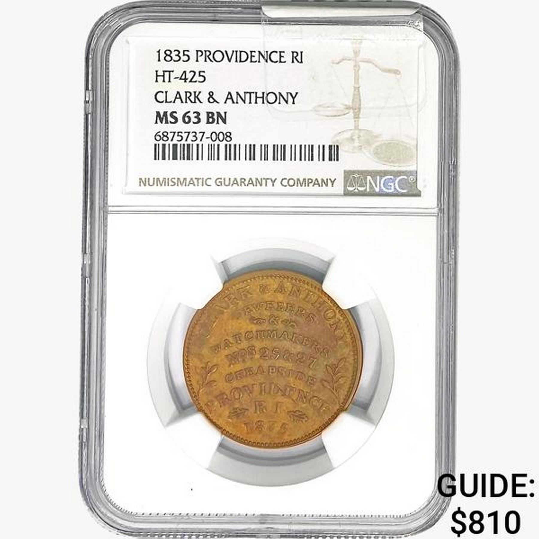1835 RI Token HT-425 Clark&Anthony NGC MS63 BN