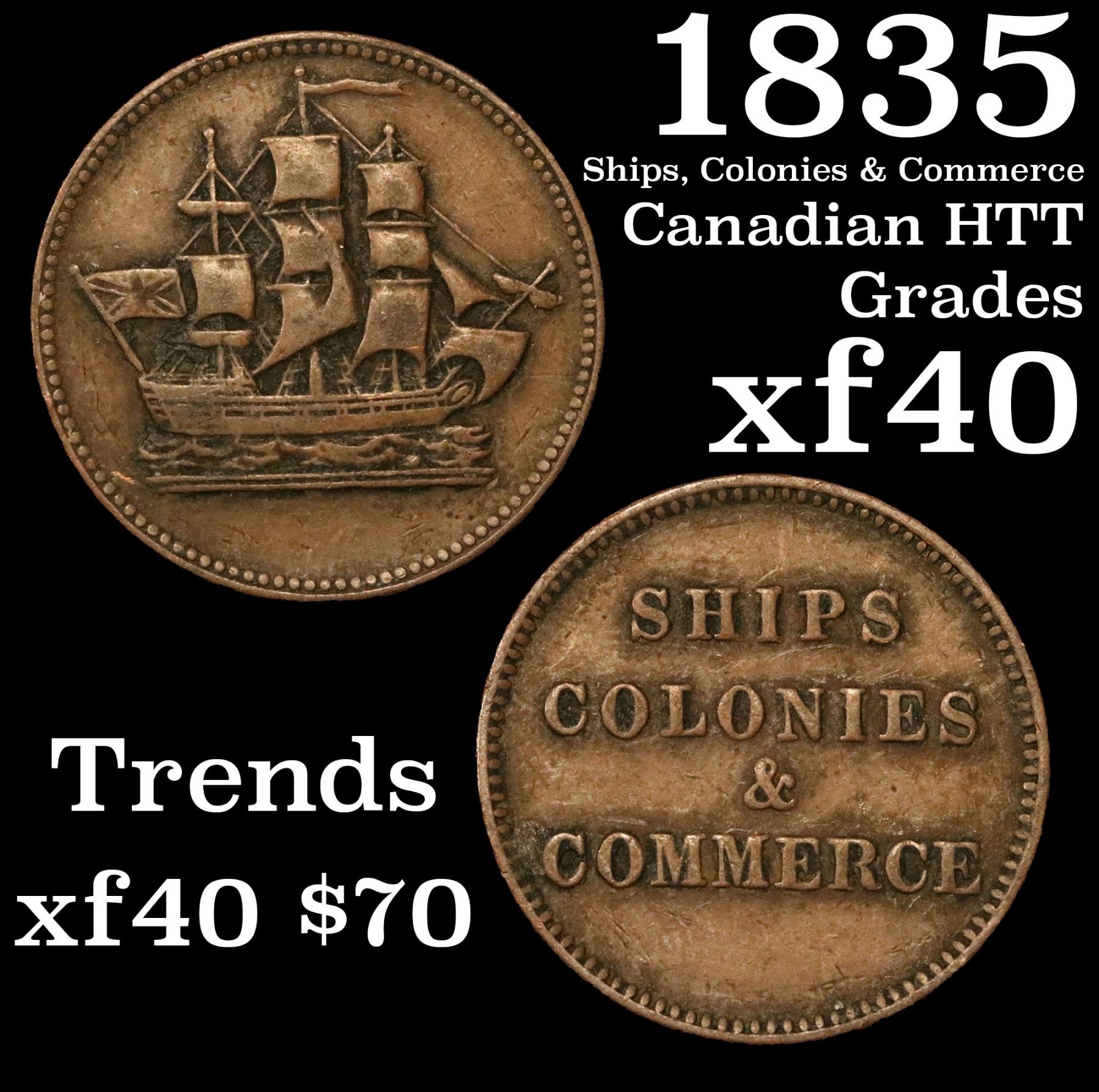 1835 Ships, Colonies & Commerce Canadian HTT 1c Grades xf.