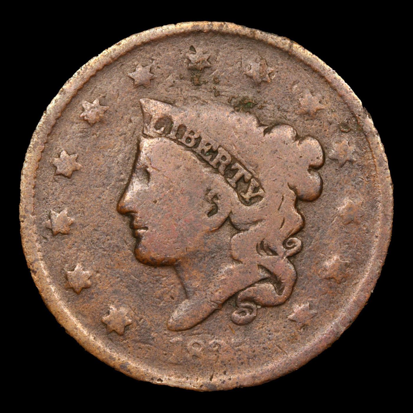 1835 Small 8, Stars Coronet Head Large Cent 1c Grades vg+.