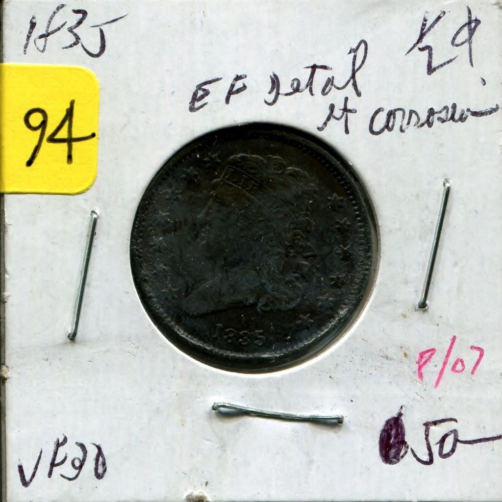 Listed as VF-30 condition with EF details but lower grading due to light corrosion. 2007 sales price of $50.