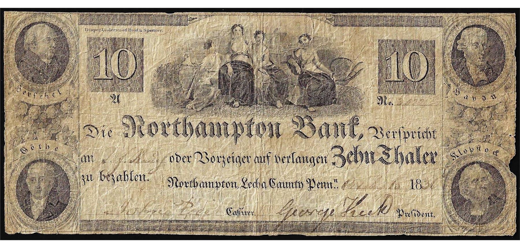 1836 $10 Northampton Bank Allentown, PA Obsolete Note