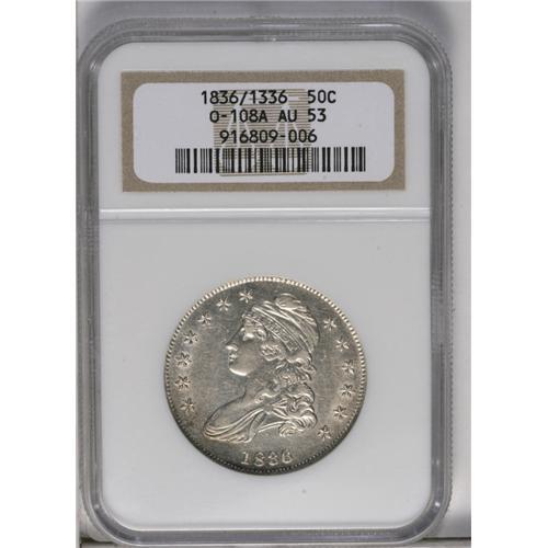 1836/1336 50C AU53 NGC. O-108A, R.2. Ample luster invi 1836/1336