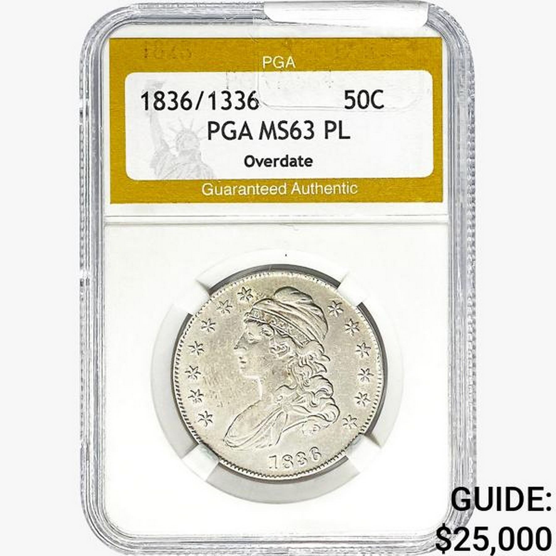 1836/1336 Capped Bust Half Dollar PGA MS63 PL, OVERDATE