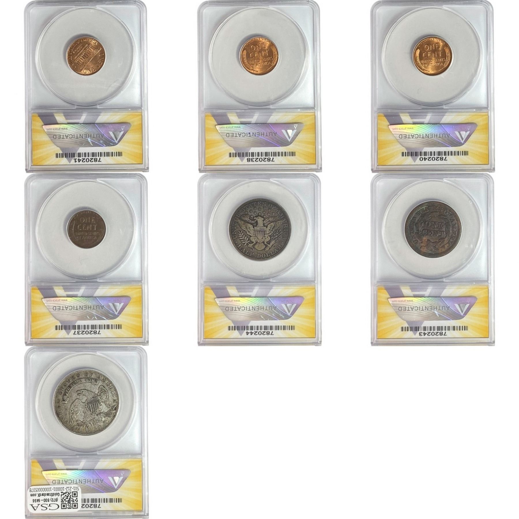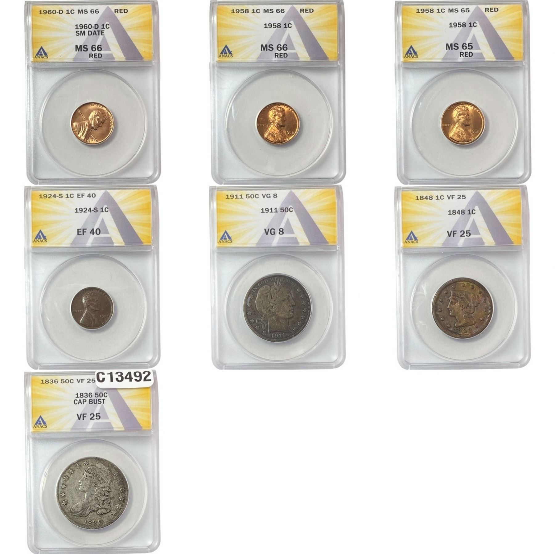 1836-1960 Graded US Type[7 Coins] ANACS VG-MS8-66
