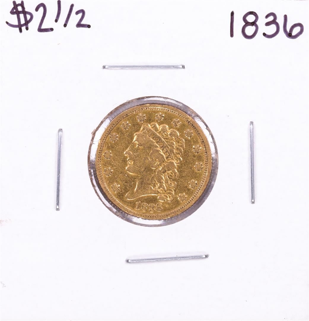 One 1836 $2 1/2 Classic Head Quarter Eagle Gold Coin.