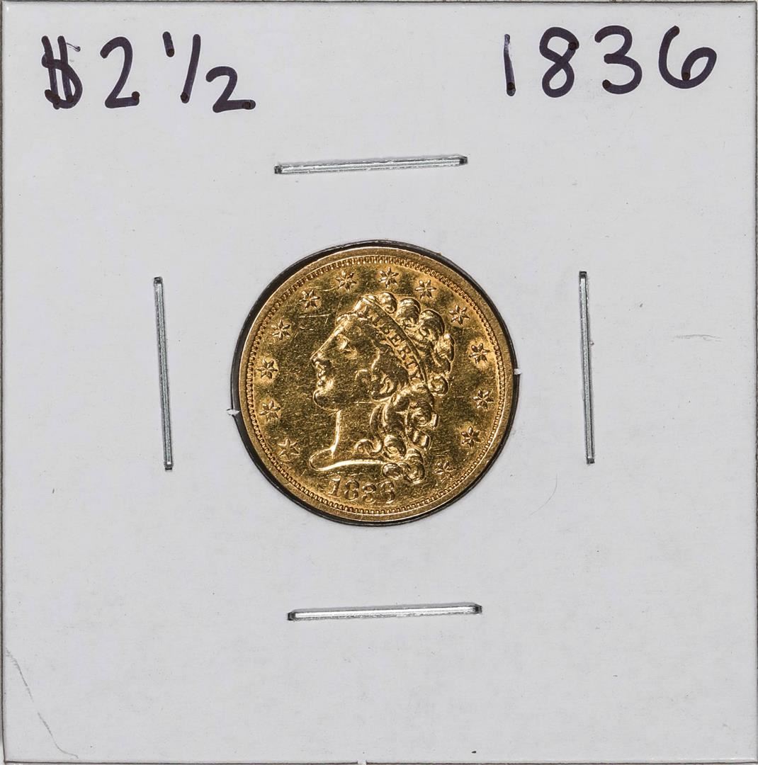 One 1836 $2 1/2 Classic Head Quarter Eagle Gold Coin.
