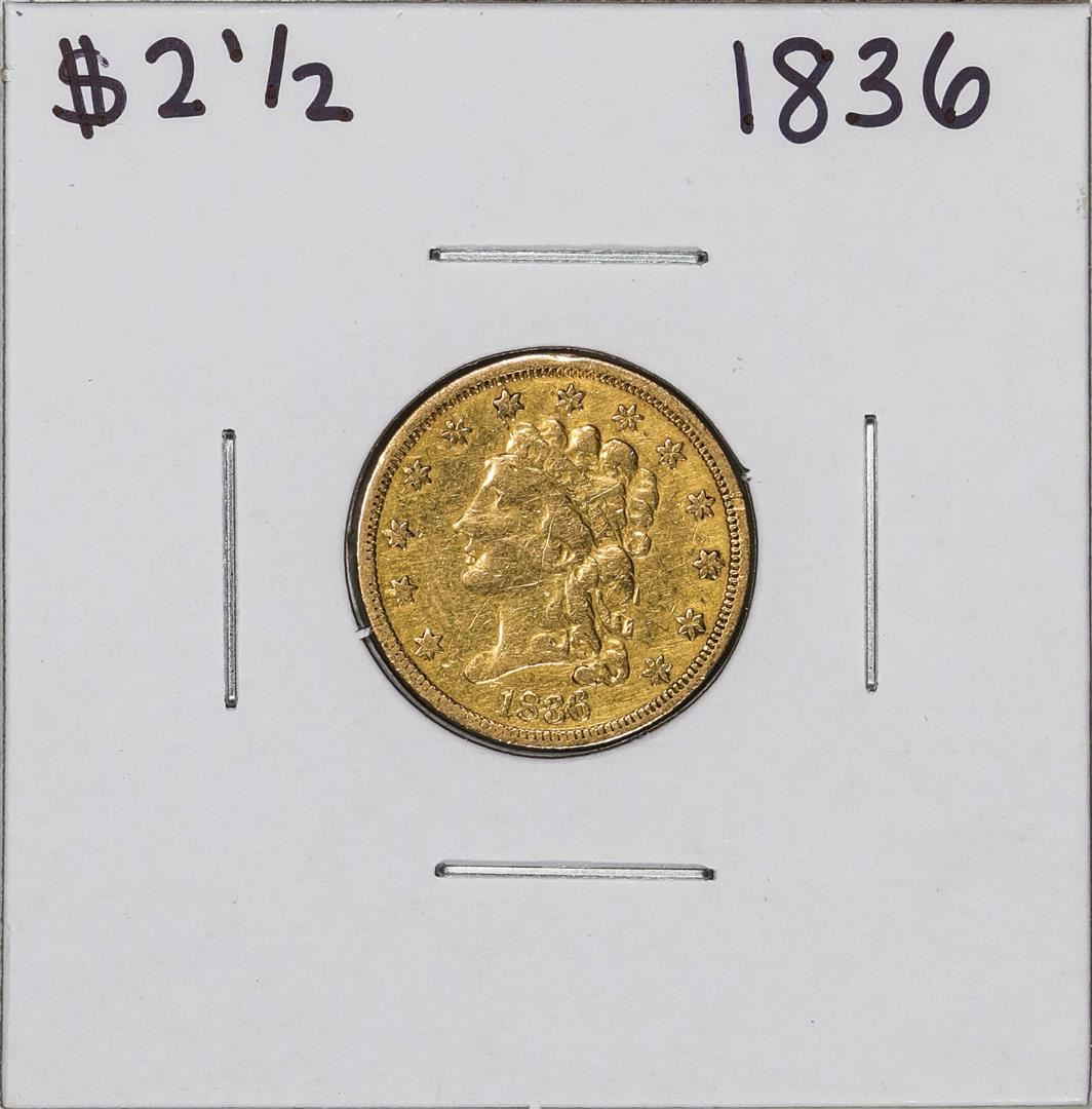 One 1836 $2 1/2 Classic Head Quarter Eagle Gold Coin.