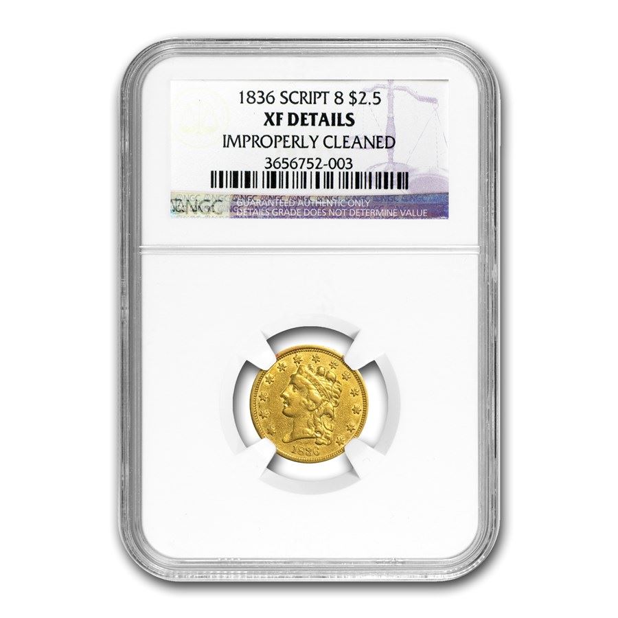 1836 $2.50 Gold Classic Head Script 8 XF Details NGC (Cleaned)