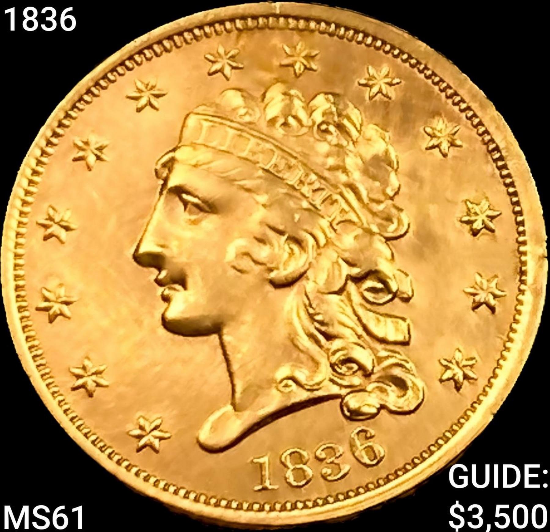 1836 $2.50 Gold Quarter Eagle UNCIRCULATED