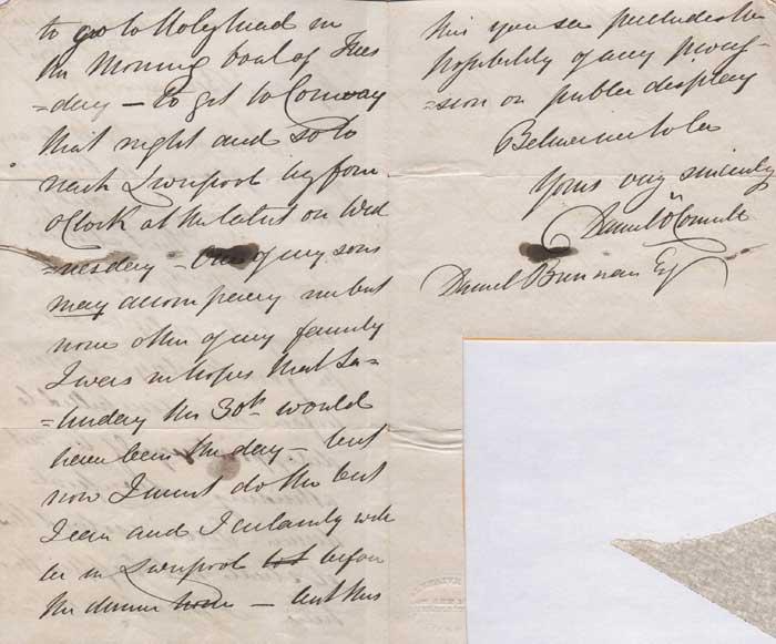 1836 (23 January) Daniel O'Connell handwritten and signed letter