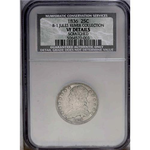 1836 25C B-1, R.2--Scratched--NCS. VF Details, Net Fin 1836[25C] B-1, R.3--Scratched--NCS. VF Detail