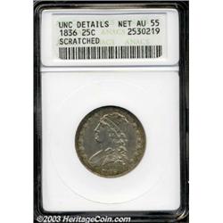 1836 25C --Scratched--ANACS. Unc Details, Net AU55.