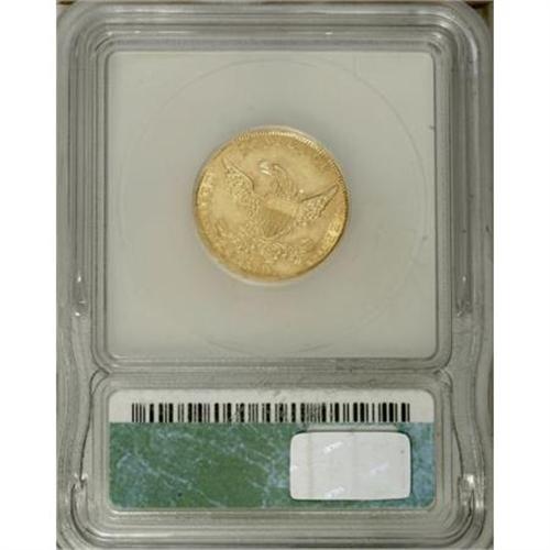<B>1836 $5 AU55 ICG.</B></I> Breen-6510, Third Head, McCloskey 3-C, R.2. Ample bright luster illuminates the devices and legends. Well struck for the type. Several small roundish marks are mostly relegated to the borders.<BR><BR><B>Coin Engraver:</B> William Kneass<BR><BR><b>Shipping:</b> Coins & Currency (<a target="_blank" href="http://www.heritageauctions.com/common/shipping.php">view shipping information</a>)