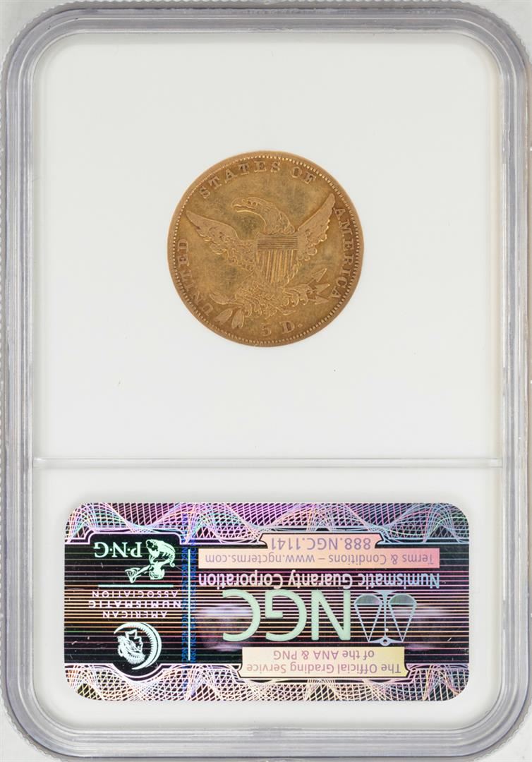 One 1836 $5 Classic Liberty Head Half Eagle Gold Coin NGC VF Details. NGC Certified.