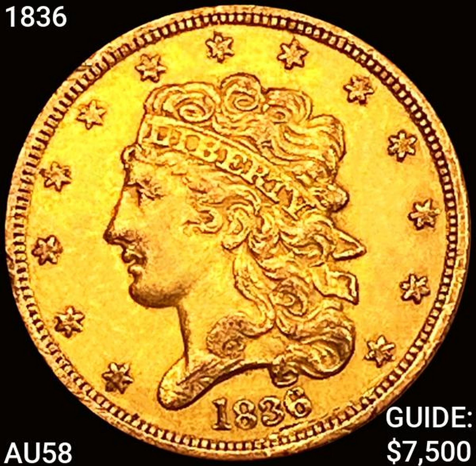1836 $5 Gold Half Eagle CHOICE AU