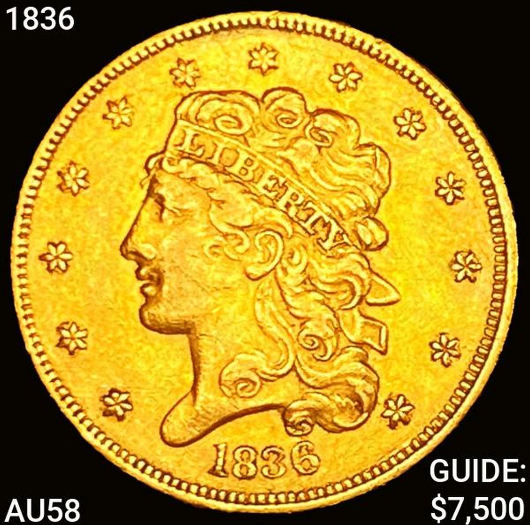 1836 $5 Gold Half Eagle CLOSELY UNCIRCULATED