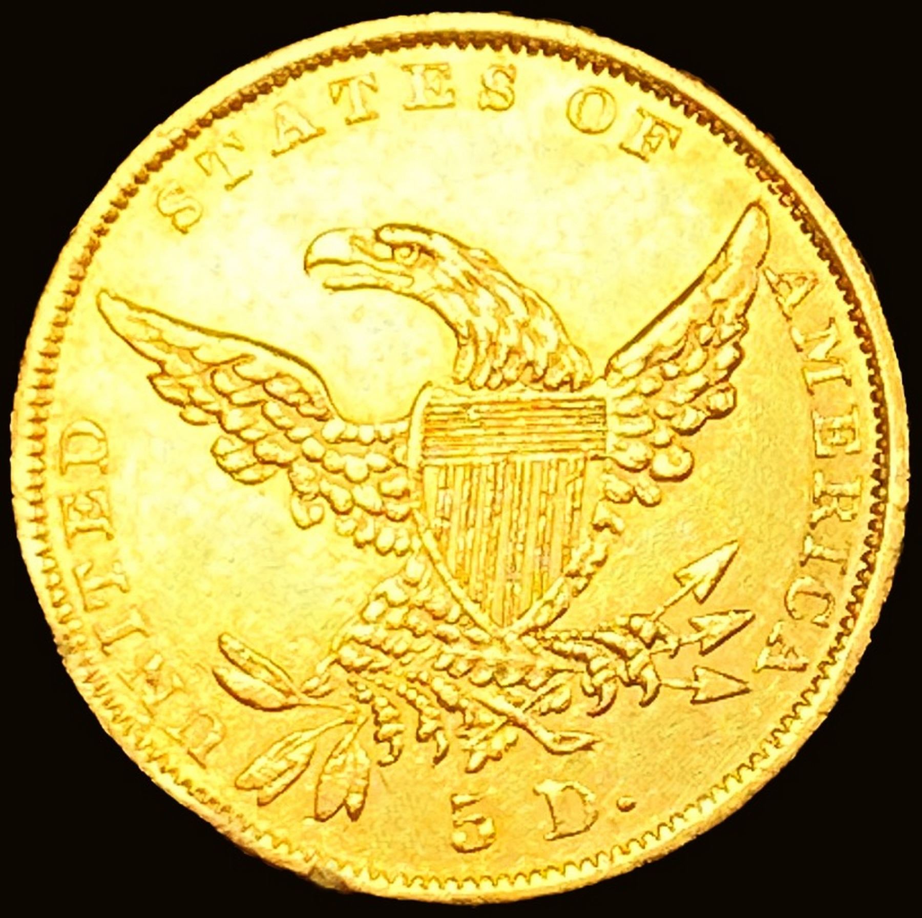 1836 $5 Gold Half Eagle CLOSELY UNCIRCULATED