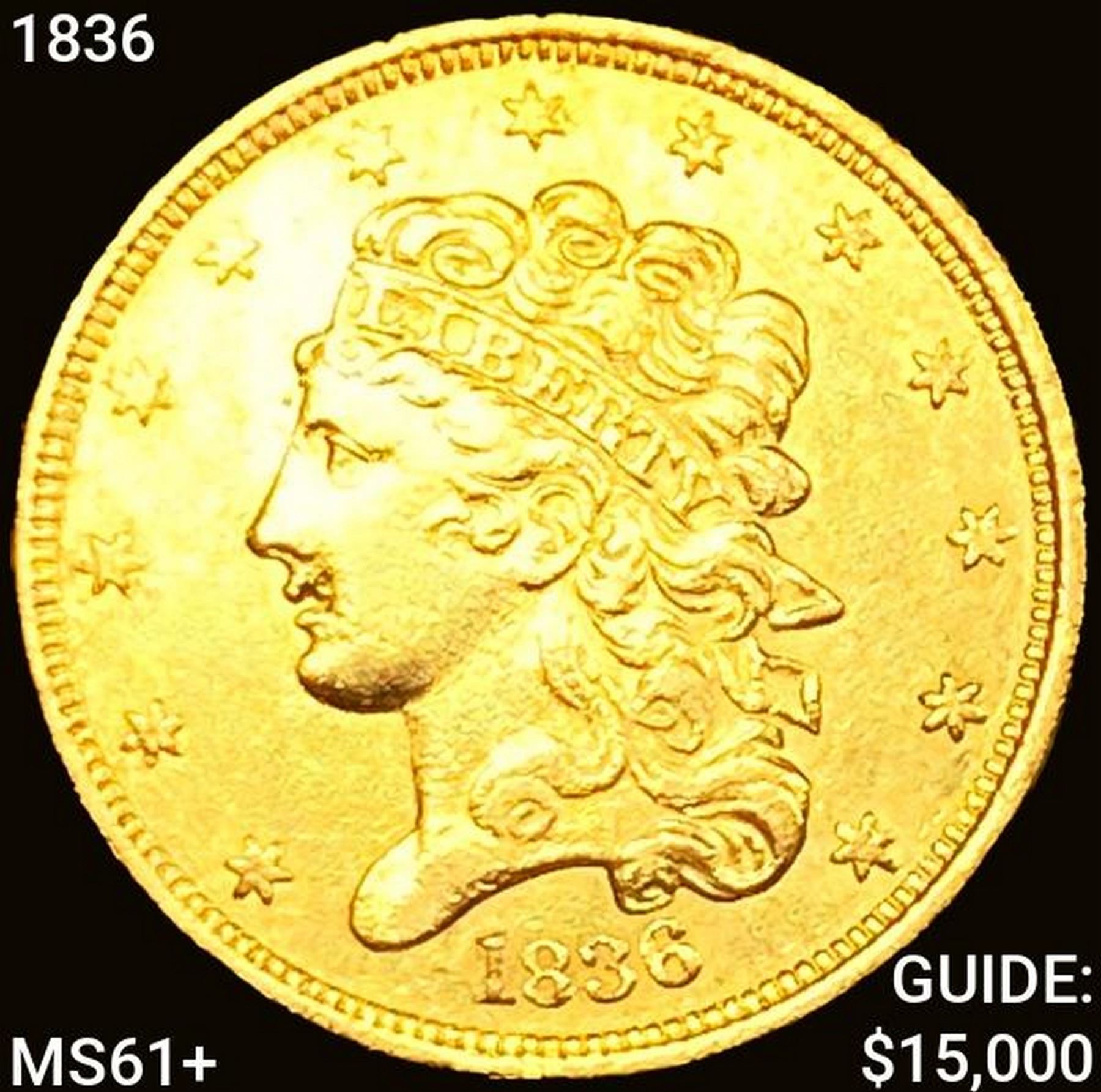 1836 $5 Gold Half Eagle CLOSELY UNCIRCULATED