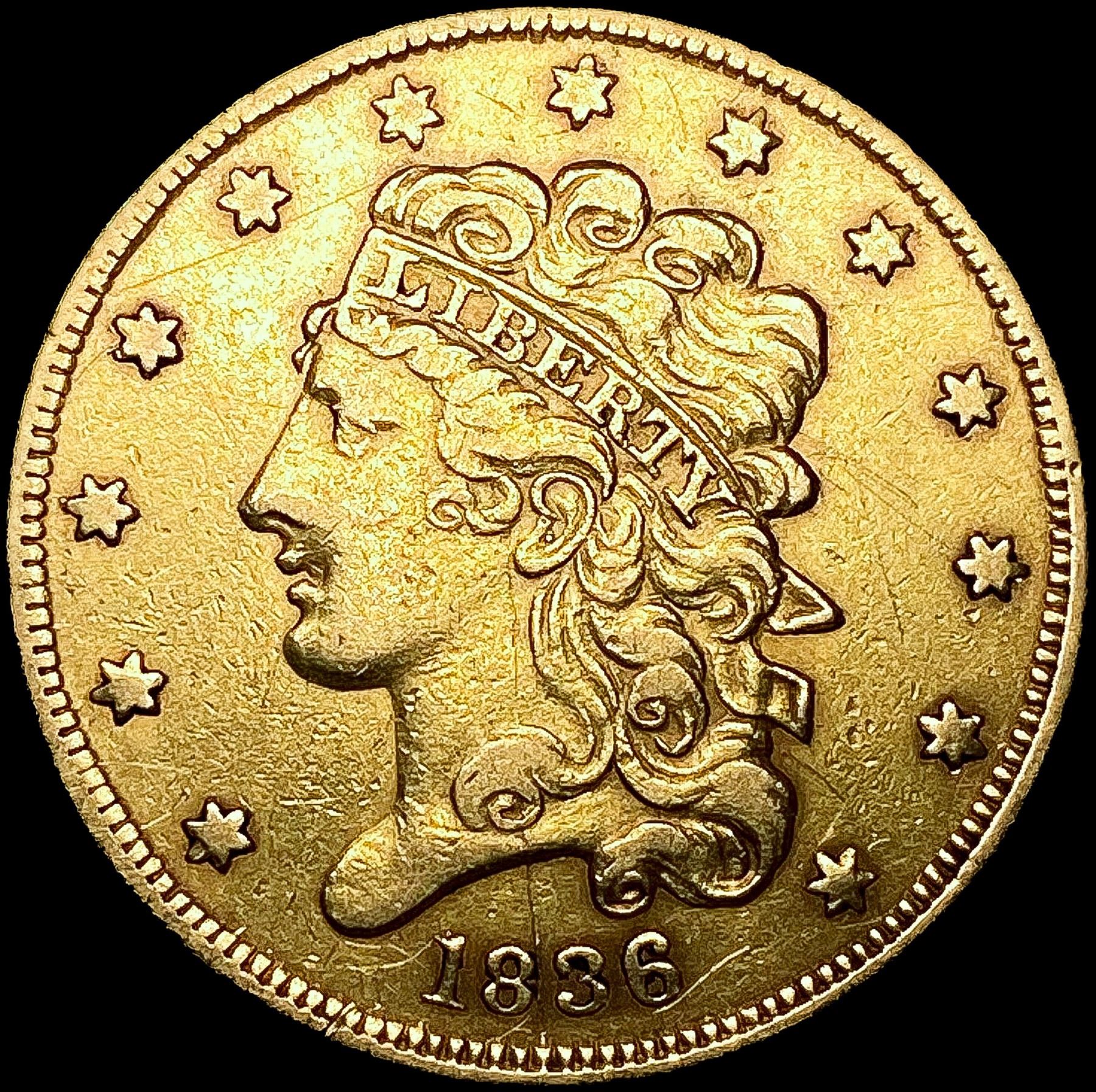1836 $5 Gold Half Eagle CLOSELY UNCIRCULATED