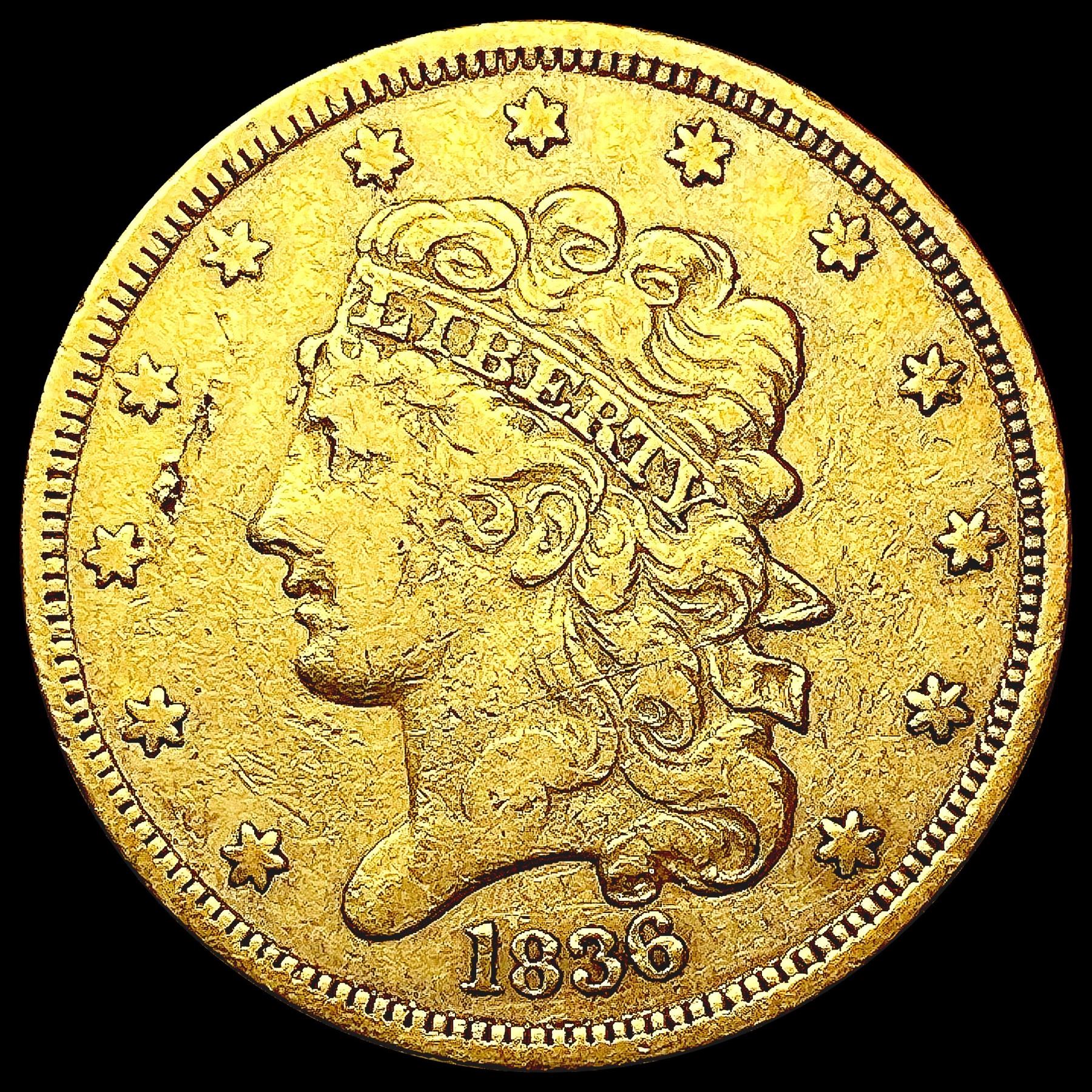 1836 $5 Gold Half Eagle NICELY CIRCULATED