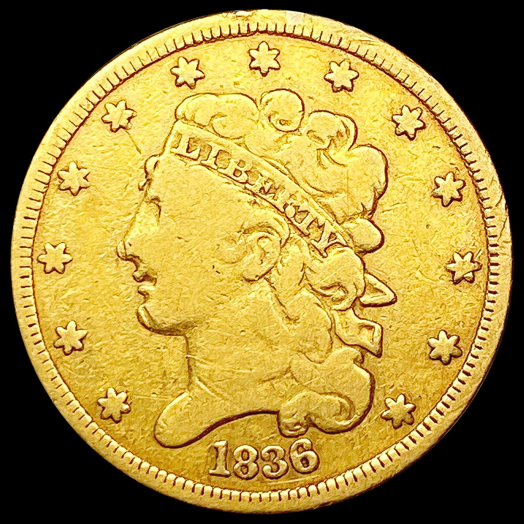 1836 $5 Gold Half Eagle NICELY CIRCULATED