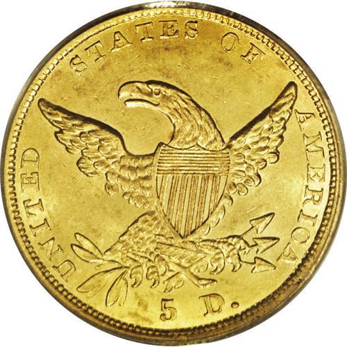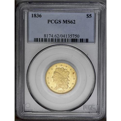 1836 $5 MS62 PCGS. Breen-6509, Second Head, Large Date