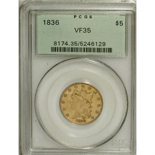 1836 $5 VF35 PCGS. PCGS Population (41/458). NGC C