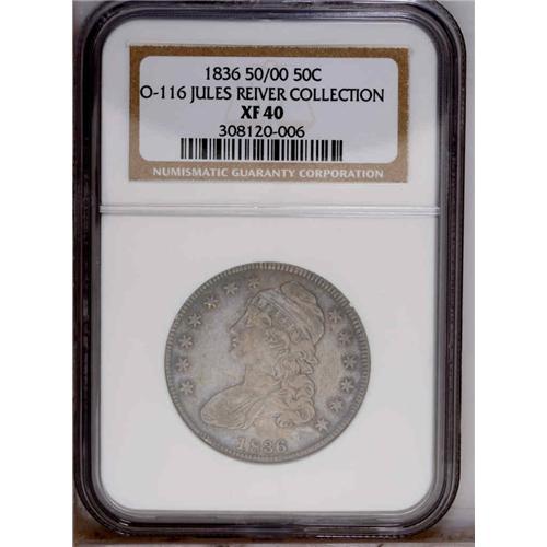 1836 50C 50 Over 00 XF40 NGC. O-116. R.2. Intermingled 1836[50C] 50 Over 00 XF40 NGC.