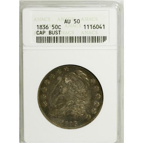 <B>1836 50C Lettered Edge AU50 ANACS.</B></I> NGC Census: (40/643). PCGS Population (69/486). Mintage: 6,545,000. Numismedia Wsl. Price for NGC/PCGS coin in AU50: $221. (#6169)<BR><BR><b>Shipping:</b> Coins & Currency (<a target="_blank" href="http://www.heritageauctions.com/common/shipping.php">view shipping information</a>)
