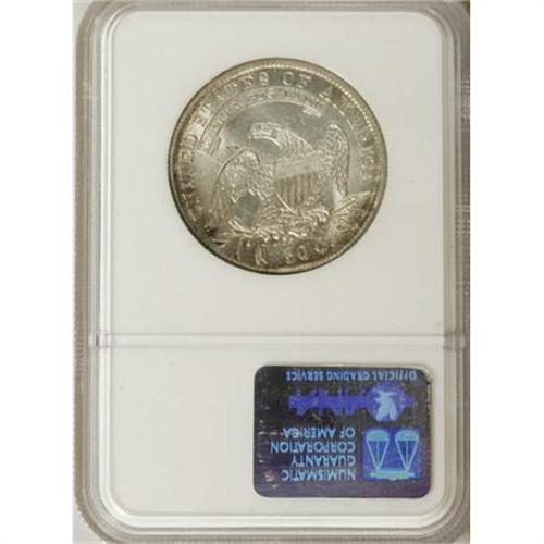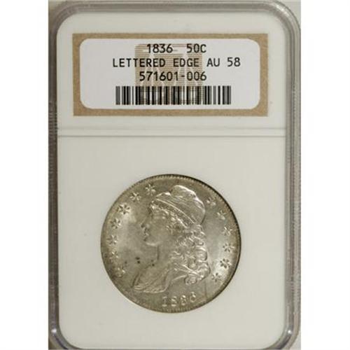 <B>1836 50C Lettered Edge AU58 NGC.</B></I> NGC Census: (199/273). PCGS Population (146/193). Mintage: 6,545,000. Numismedia Wsl. Price for NGC/PCGS coin in AU58: $585. (#6169)<BR><BR><B>Coin Engraver:</B> John Reich<BR><BR><b>Shipping:</b> Coins & Currency (<a target="_blank" href="http://www.heritageauctions.com/common/shipping.php">view shipping information</a>)
