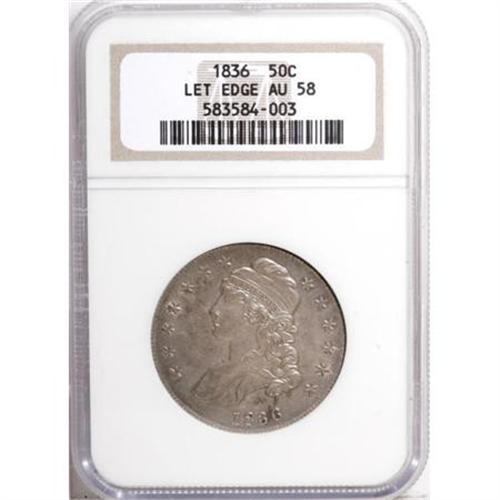 1836 50C Lettered Edge AU58 NGC