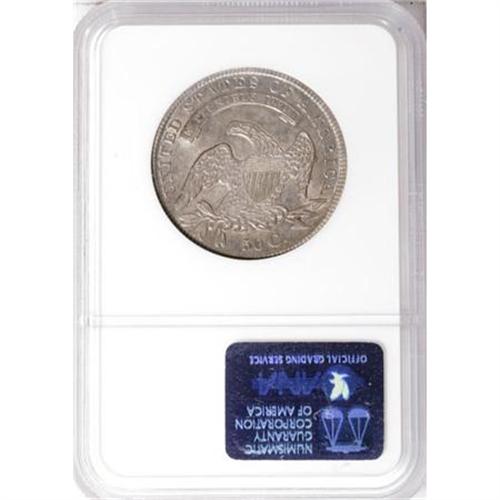 <B>1836 50C Lettered Edge AU58 NGC.</B></I> NGC Census: (203/277). PCGS Population (151/194). Mintage: 6,545,000. Numismedia Wsl. Price for NGC/PCGS coin in AU58: $585. (#6169)<BR><BR><B>Coin Engraver:</B> John Reich<BR><BR><b>Shipping:</b> Coins & Currency (<a target="_blank" href="http://www.heritageauctions.com/common/shipping.php">view shipping information</a>)