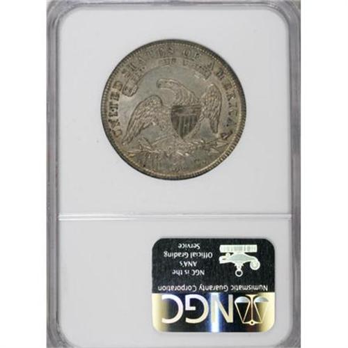 <B>1836 50C Lettered Edge AU58 NGC.</B></I> NGC Census: (203/277). PCGS Population (151/194). Mintage: 6,545,000. Numismedia Wsl. Price for NGC/PCGS coin in AU58: $585. (#6169)<BR><BR><B>Coin Engraver:</B> John Reich<BR><BR><b>Shipping:</b> Coins & Currency (<a target="_blank" href="http://www.heritageauctions.com/common/shipping.php">view shipping information</a>)