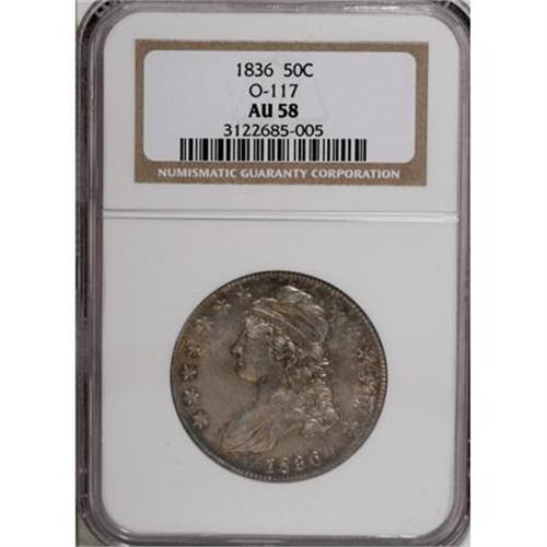 <B>1836 50C Lettered Edge AU58 NGC.</B></I> O-117. NGC Census: (205/281). PCGS Population (155/199). Mintage: 6,545,000. Numismedia Wsl. Price for NGC/PCGS coin in AU58: $595. (#6169)<BR><BR><B>Coin Engraver:</B> John Reich<BR><BR><b>Shipping:</b> Coins & Currency (<a target="_blank" href="http://www.heritageauctions.com/common/shipping.php">view shipping information</a>)