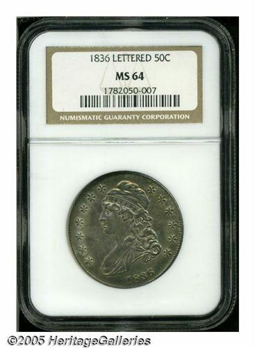1836 50C Lettered Edge MS64 NGC. O-108a, R.2. Thi