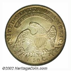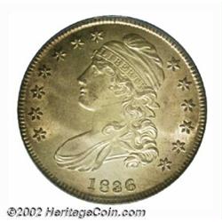 1836 50C Lettered Edge MS64 PCGS. O-113, R.2. A lower Condition Census piece with the C.C. listed in Overton as (65, 65, 65, 64, 63). Sharply defined throughout with smooth, lustrous surfaces with light toning on each side. Minimally abraded with no obvious distractions on either side. Population: 31 in 64, 6 finer (9/02). Important notice: We expect to be auctioning lots at the rate of 200-250 per hour. Sometimes eBay Premier live bid software cannot keep up with that pace, so we strongly recommend that you place a realistic proxy bid now as insurance to avoid disappointment. Also please note that all Heritage/CAA lots purchased through eBay Premier carry a 20% Buyer's Premium. Please make sure you read the Terms and Conditions.
